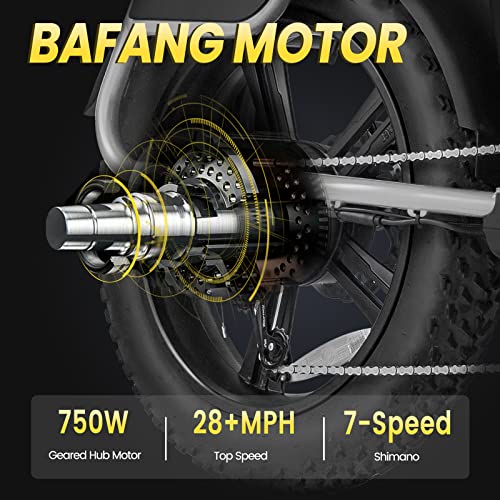- 【750W BAFANG Motor】750W BAFANG motor provides PRADO S fat tire electric bike with stronger traction , max speed up to 28+MPH, excellent climbing ability.You can enjoy the fun to travel across street and ride uphill effortlessly.